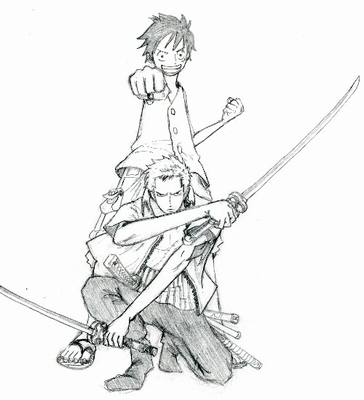 ルフィ肩車のゾロは、最初ルフィ単体で描いてたんだけど
