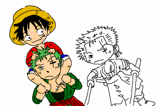 誰かに肩車されているような恰好になってしまったのでゾロにしてみたw
